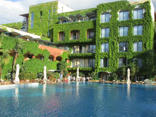 un unico corpo centrale con diversi piani che si sviluppa attorno alla bella ed ampia piscina.