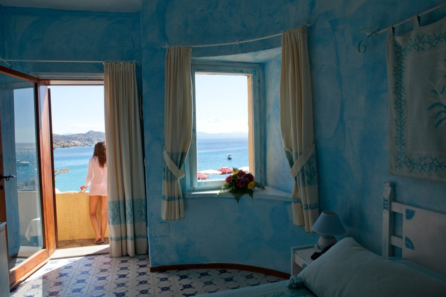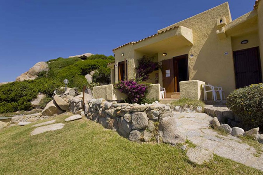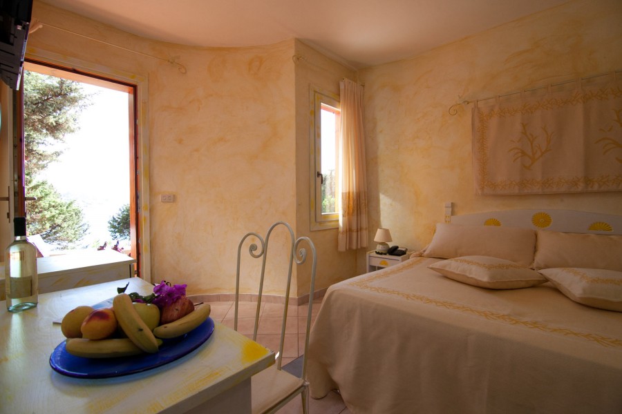 piccole costruzioni in muratura distribuite in diverse file sul declivio che va verso il mare. 75 camere tutte con ingresso indipendente. Le camere più in alto si raggiungono tramite scalinate in pietra e camminamenti e godono di una spettacolare vista con magnifici tramonti. Le camere si dividono in doppie, matrimoniali, triple e quadruple con letto a castello. Dispongono tutte di servizi con doccia, aria condizionata, ventilatore a pale, TV, telefono, asciugacapelli, cassaforte e minifrigo. Le camere "Terrazzo, con supplemento, hanno tutte vista mare e terrazza panoramica attrezzata con tavolino, ombrellone, lettini. Sono disponibili camere per diversamente abili.