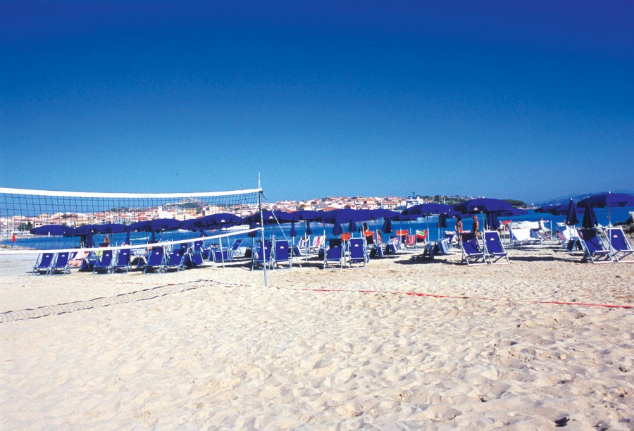 Spiaggia di sabbia con ampia disponibilità di ombrelloni con sdraio e lettini a esaurimento; beach volley, attività di animazione e Hero Camp.