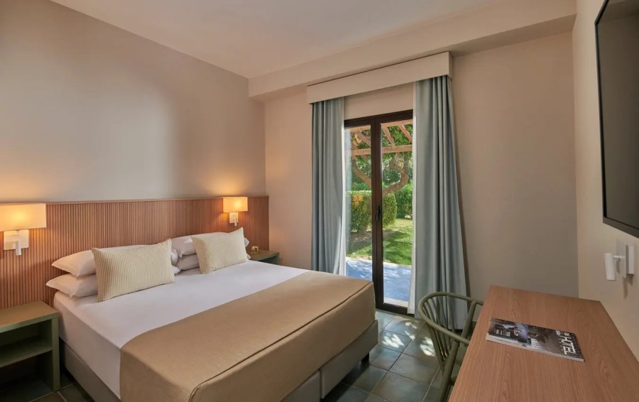 Un design moderno e fresco e colori tenui in sintonia con la natura caratterizza le 484 camere recentemente rinnovate del Serenè Village, poste su due piani, vicinissime al mare (300 m), suddivise in camere Classic, Superior, Family e Premium. Le camere al piano terra dispongono di giardino, quelle al primo piano di balconcino. Su richiesta, possibilità di camere comunicanti e per diversamente abili.