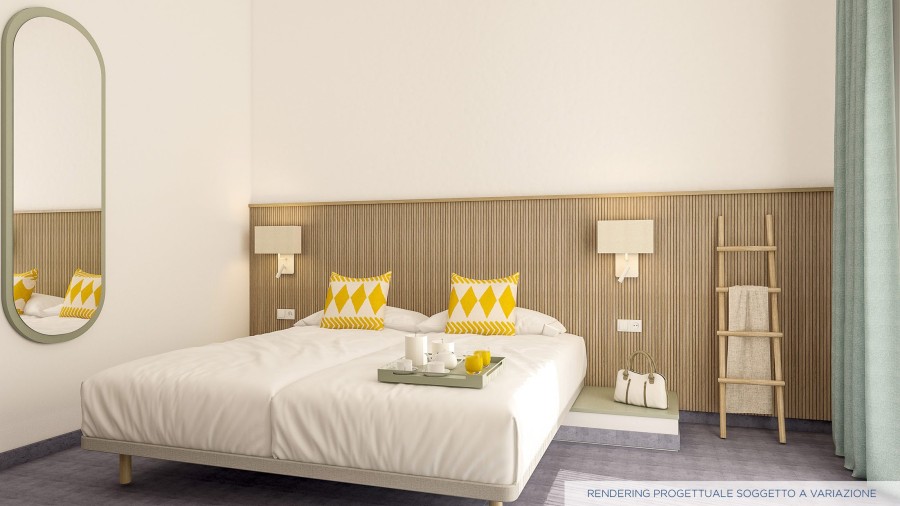 Superior Quadrupla: Camera per 4 o 5 ospiti, elementi d’arredo dividono il letto matrimoniale e i due letti singoli. Sono dotate di aria condizionata con regolazione individuale, TV, Wi-Fi, mini-frigo, cassaforte, bagno. Disponibili Superior Quadrupla Garden al piano terra con giardino e Superior Quadrupla Balcony al primo piano con Balconcino.