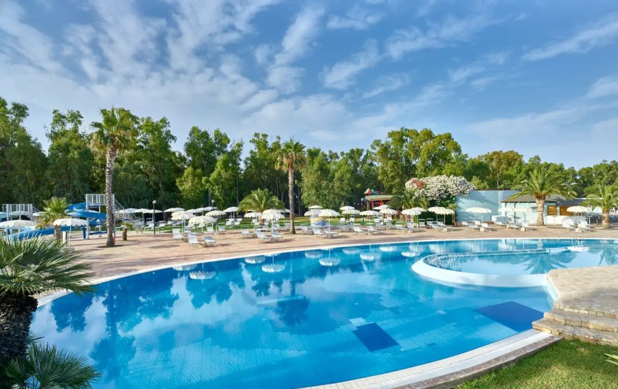 Nel resort Bluserena a disposizione delle famiglie una piscina con due vasche di cui una con idromassaggio, una piscina nuoto e una piscina riservata al Mini Club.