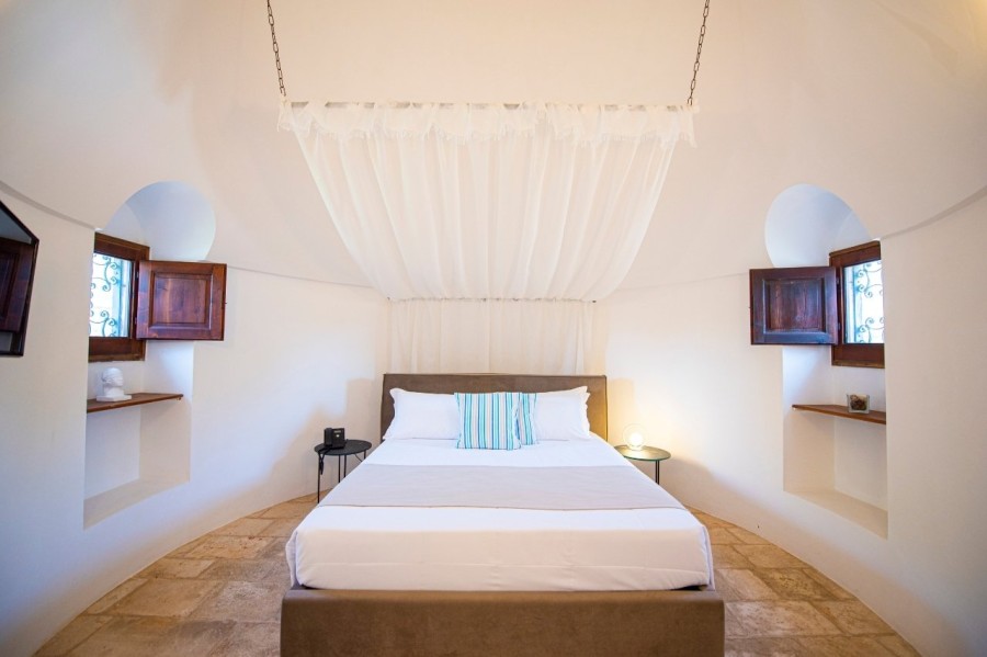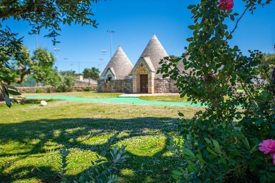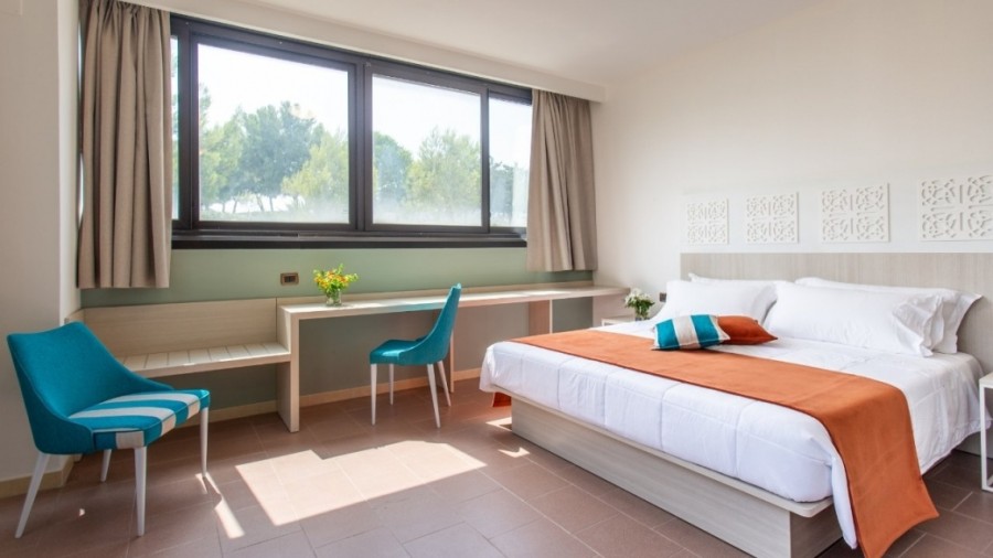 Camere: La struttura dispone di Camere Family Room arredate con tutti i comfort, con accesso indipendente (2/4 posti letto), doppio ambiente con patio o balcone, soggiorno con divano letto doppio e camera con letto matrimoniale. Su richiesta disponibili camere Family per disabili (fino a 4 pax). Altra tipica sistemazione è il Trullo A Tre Coni su richiesta con supplemento (max 2 pax + infant): sistemazione in trullo indipendente composto da 3 coni, con soggiorno, camera da letto e servizio, prima fornitura di minibar all’arrivo, 2 accappatoi, riassetto 2 volte al giorno, cesto di frutta e prosecco all'arrivo, prenotazione garantita presso il Pugliese, ombrellone garantito in spiaggia nel lido sabbioso incluso a ca 100 mt dall'Hotel per mattina o pomeriggio sino ad esaurimento posti (1 ombrellone e 2 lettini a camera).
