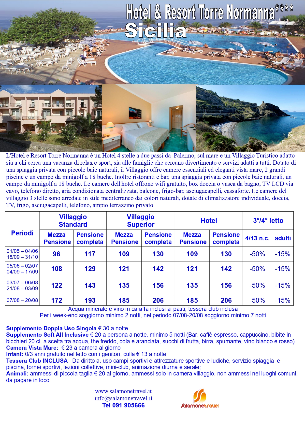 Due piscine di acqua dolce (dal 01/05 al 30/09) circondate da uno spazio verde ed ampio solarium con lettini. Una Piscina per bambini e Mini club con giochi en plein air. Animazione (dal 20/05 al 30/09) con attività sportive e intrattenimento per adulti e bambini, campi da tennis, campo beach volley, campo di calcio a 5, 2 campi di bocce, minigolf 18 buche, tiro con l’arco. Palestra attrezzata con moderni attrezzi per i più sportivi, grande anfiteatro per assistere agli spettacoli serali. L’area Meeting dell’Hotel Torre Normanna, dispone di oltre 1000 mq di area congressuale con luce naturale con sale che possono contenere da 10 a 800 persone, ampi spazi per stand e possibilità di personalizzare gli spazi secondo le proprie esigenze. Un moderno sistema di pareti mobili fono-assorbenti rende le superfici delle sale adattabili ad ogni esigenza del cliente.