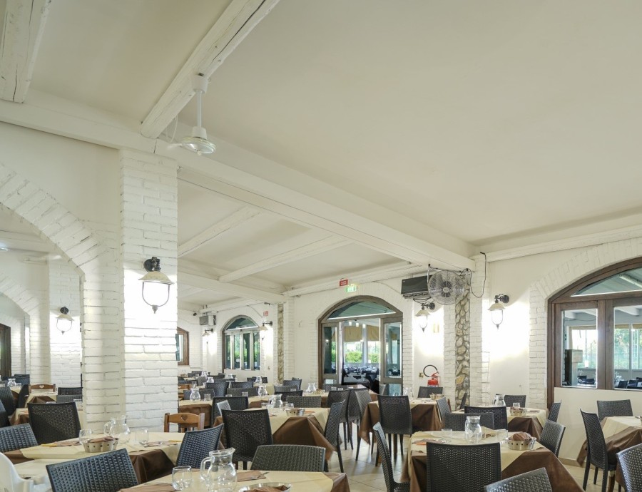 con servizio di prima colazione, pranzo e cena a buffet acqua e vino in brocca inclusi ai pasti in formula hotel, offre cucina Regionale e nazionale, su richiesta pasti per celiaci (a pagamento).