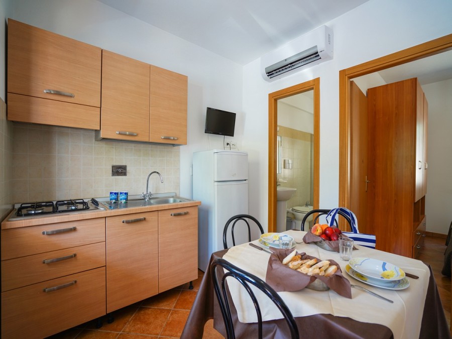 Camera Hotel Comfort (mq 28): (2/4 posti letto) situate al piano terra, dotate di tutti i comfort con bagno privato e doccia, Tv Digitale, aria condizionata, mini- frigo, letto matrimoniale e letto a castello. Ogni unità abitativa dispone di patio attrezzato (collocate nel 1° o 2° viale). Bilocale Family Room (mq35): (4 posti letto) 2 ambienti, soggiorno con angolo cottura e letto a castello, camera matrimoniale, possono essere al primo piano con terrazzino o a piano terra con patio, entrambi gli esterni sono dotati di tavolo, sedie, stendibiancheria e ombrellone (collocati nel 1° o 2° viale). Bilocale 5 Family Room (mq35): (5 posti letto) 2 ambienti, soggiorno con letto a castello e lettino, camera matrimoniale, possono essere al primo piano con terrazzino o a piano terra con patio, entrambi gli esterni sono dotati di tavolo, sedie, stendibiancheria e ombrellone (collocati nel 2° viale).Bungalow (mq35): (4 posti letto) 2 ambienti, soggiorno con letto a castello, camera matrimoniale, situati a piano terra con patio, sono dotati di tavolo, sedie, stendibiancheria e ombrellone (collocati nel 3° viale, a circa 500m dai servizi principali).Pulizia giornaliera con cambio asciugamani due volte a settimana, cambio biancheria da letto una volta a settimana (tre in caso di soggiorni di due settimane).