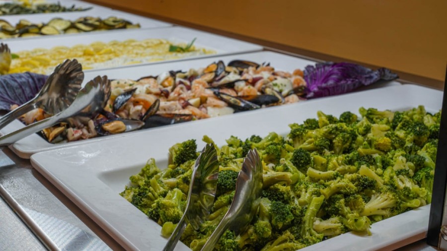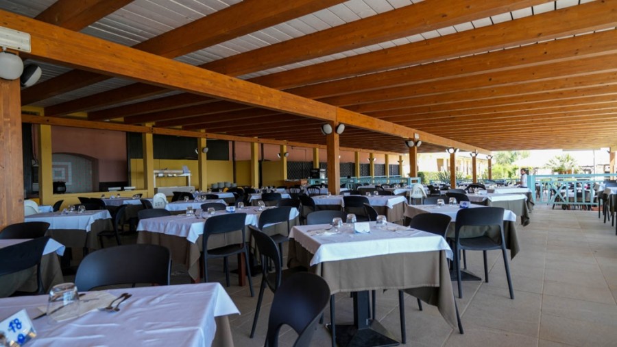 Ristorazione: Ristorante a buffet "La Terrazza" offre un'ampia selezione di piatti della cucina locale e internazionale, con griglieria e pizzeria. Piatti regionali e internazionali, con un'ampia scelta di antipasti, primi, secondi, contorni, autentica pizza italiana, frutta e dolci. Ogni settimana una speciale cena tipica sarda,dai sapori autentici della tradizione locale. Serate a tema ,varietà e divertimento. A pranzo e cena sono sempre inclusi acqua, vino bianco e rosso della casa. È disponibile anche, su richiesta, una selezione di vini locali e nazionali. Per gli ospiti affetti da intolleranze alimentari sono disponibili prodotti base privi di glutine e lattosio, assistenza ai pasti per tutta la durata del soggiorno (non garantita la non contaminazione). A disposizione degli infant fino a 3 anni non compiuti biberoneria attrezzata con prodotti principali specifici per l’infanzia.
