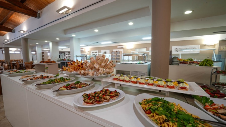 Ristorazione: nella grande sala ristorante climatizzata, tutti i pasti sono serviti a buffet con ampia scelta di antipasti, primi, secondi, contorni, vera pizza italiana cotta al forno, frutta o dolce. (acqua e vino in caraffa inclusi); ogni settimana sono previste 2 cene a tema, una con menù di mare e l’altra con prodotti tipici Sardi. Per i più piccoli, le mamme hanno a disposizione uno spazio dedicato con forno a microonde, biberoneria, latte ed una selezione di prodotti per l’infanzia. Celiachia: L’hotel non è specializzato nel predisporre di appositi cibi privi di glutine; inoltre, per quanto riguarda i cibi serviti al tavolo e/o a buffet non è garantita la totale assenza di contaminazione crociata nella fase di preparazione e/o di somministrazione delle pietanze. Si fa presente però che al ristorante sarà possibile trovare una grande varietà di alimenti, fra cui anche pietanze che solitamente non contengono glutine oltre che alcuni prodotti di base dedicati. Per tale motivo ed in base alla gravità della celiachia sofferta, si invita i clienti a segnalare in fase di prenotazione affinché, all’arrivo in struttura, il direttore unitamente allo chef possano valutare un menu personalizzato. Per ogni precauzione, qualora il cliente desiderasse portare in hotel degli alimenti specifici (unitamente a contenitori e posateria personali) sarà cura dell’hotel predisporne l’utilizzo da parte del personale per la preparazione dei pasti.